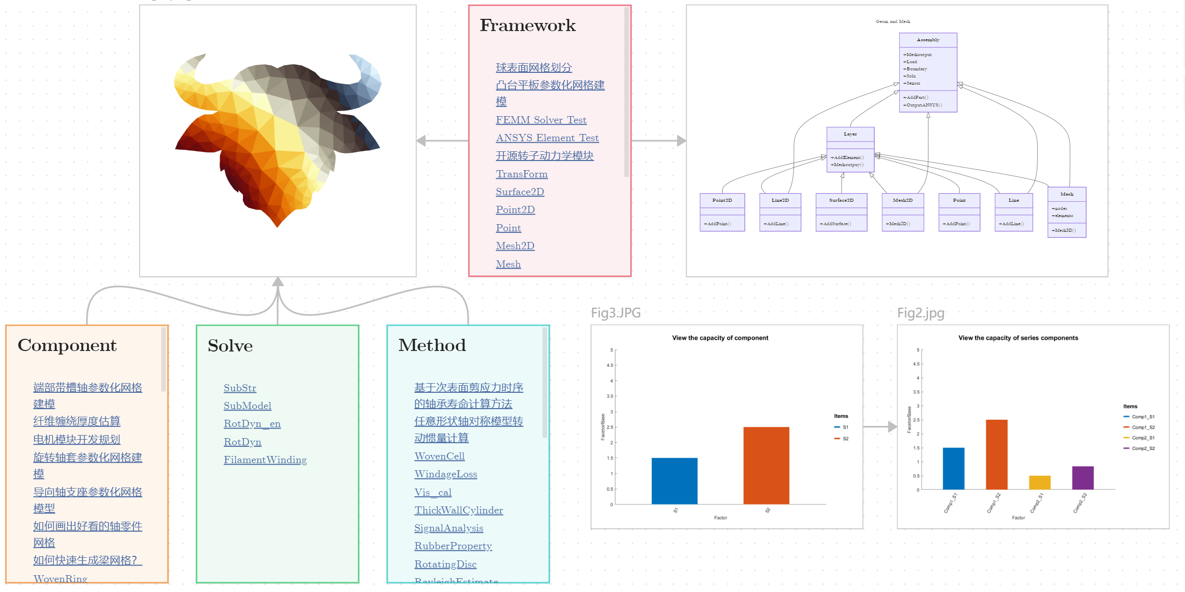 Baffalo (https://github.com/FE-Berserker/Baffalo) 是开源的Matlab工具箱来建立机械系统分析的工具,提供网格、画图和工程计算的功能,可直接进行网格层级的部件装配,并直接将文件导出到ANSYS和Simpack中进行分析。
