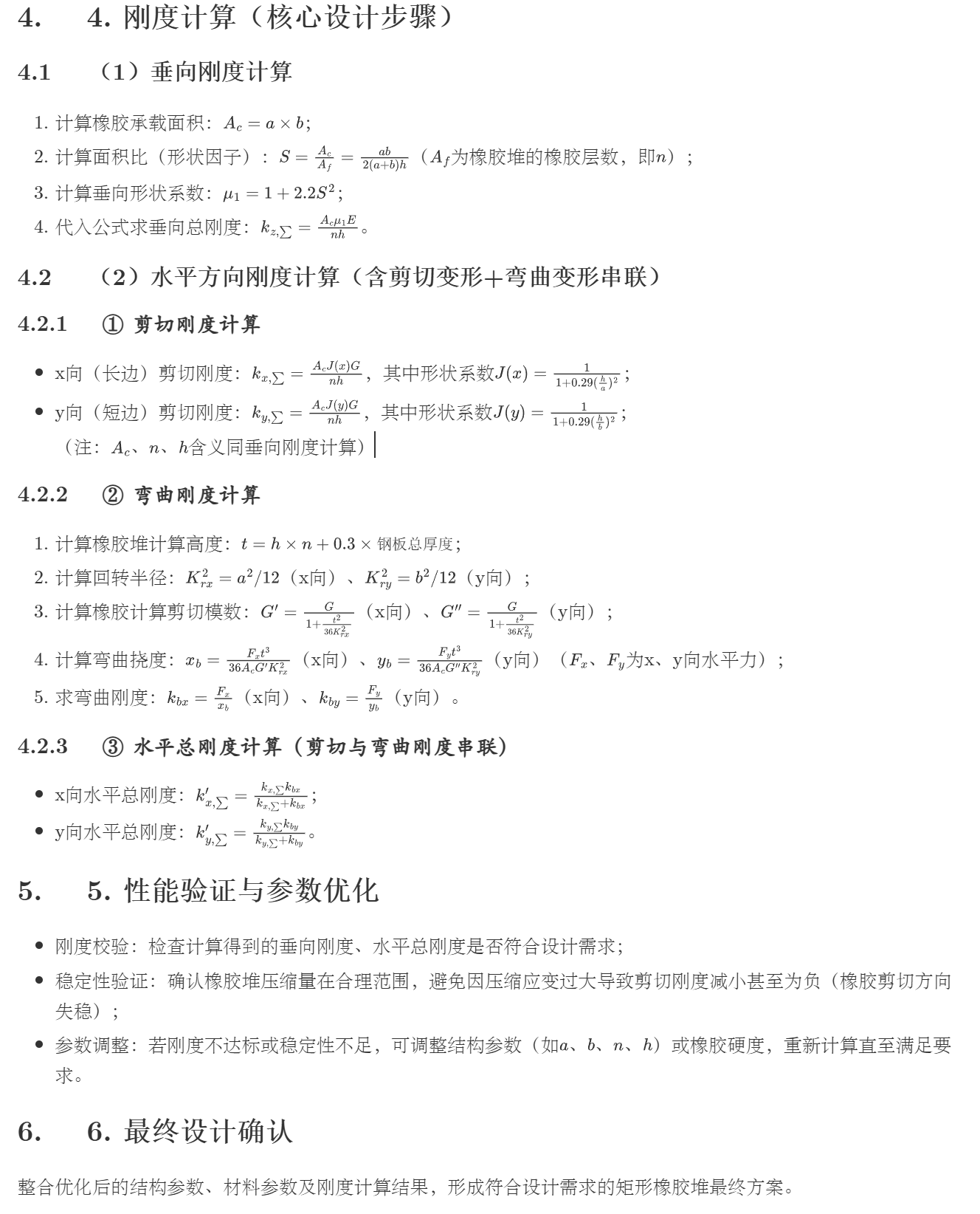 % - 矩形橡胶堆水平方向刚度计算(剪切+弯曲)