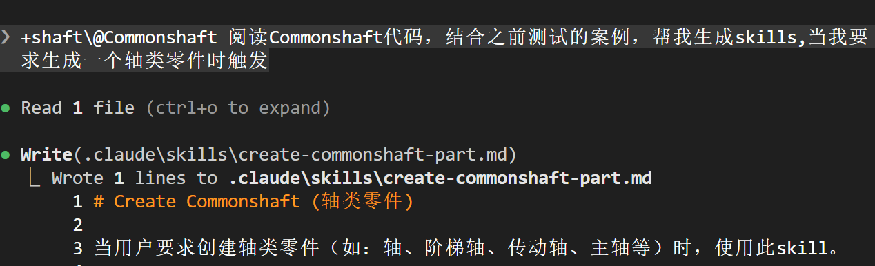 测试完成后,告诉AI当我要生成轴零件时,调用对应的代码